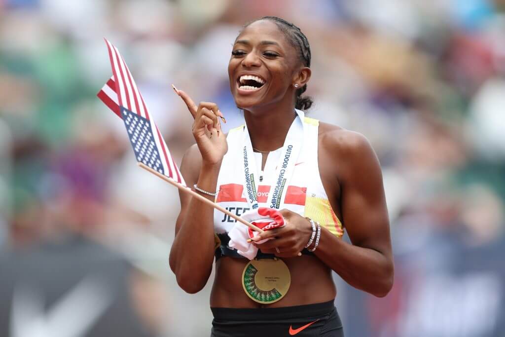She completed the double at the U.S. championships on Sunday, smoking a field featuring reigning Olympic champion Gabby Thomas, Olympic bronze medalist Brittany Brown, and rising star McKenzie Long.